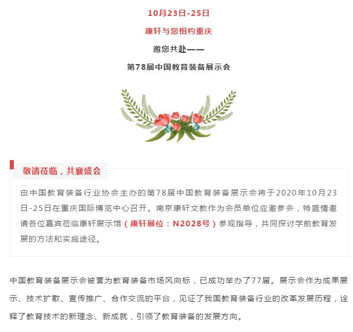 金秋十月,康轩与您相约重庆 | 第78届中国教育装备展邀请函