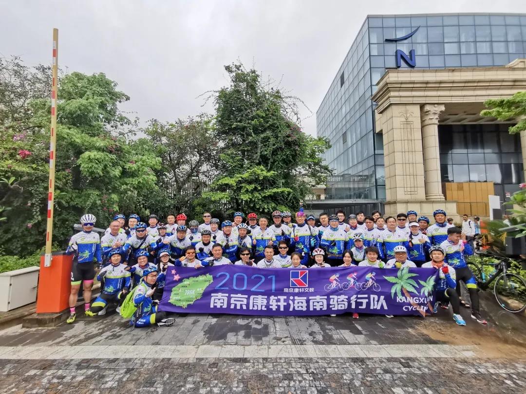 康轩骑行队从海口出发,途经博鳌、兴隆、三亚、金月湾、昌江、儋州等城市,环岛一周,全程785公里。 时间 行程 说明 4.28 抵达海口 / 4.29 海口-博鳌 130KM 4.30 博鳌-兴隆 110KM 5.1 兴隆-三亚 120KM 5.2 三亚-金月湾 95KM 5.3 金月湾-昌江 95KM 5.4 昌江-儋州 80KM 5.5 儋州-海口 130KM 5.6 海口返程 / 浩浩荡荡的骑行队伍一路飞驰,不畏风雨,不惧艰难,奋勇向前!正是康轩人的顽强意志和旺盛的生命力,给康轩带来了欣欣向荣的蓬勃朝气,让南京康轩在开创15年后的今天依然如日中天!